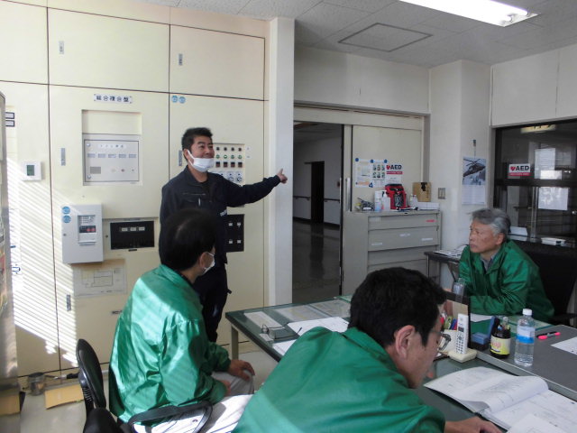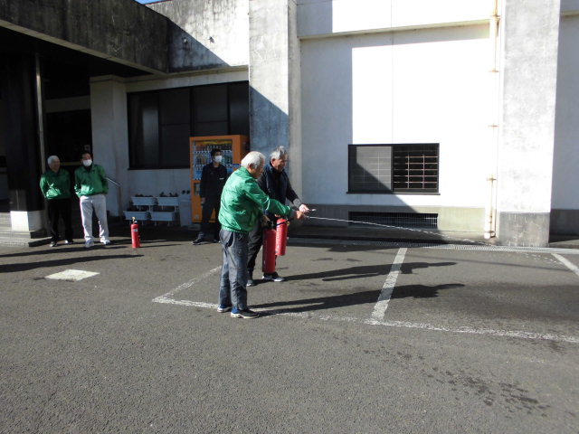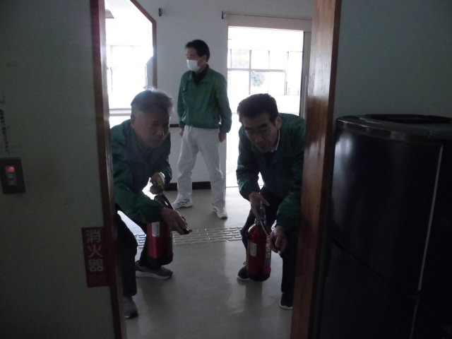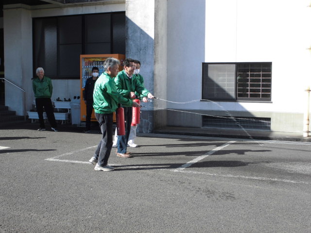 通報訓練、消防設備の操作訓練、初期消火訓練、避難誘導訓練、消火器操作訓練などを行いました。